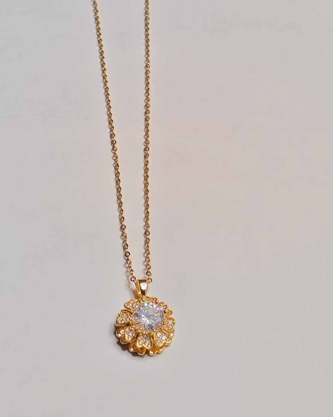 Gold Plated Flower Pendant Necklace | Pave Solitaire Chain