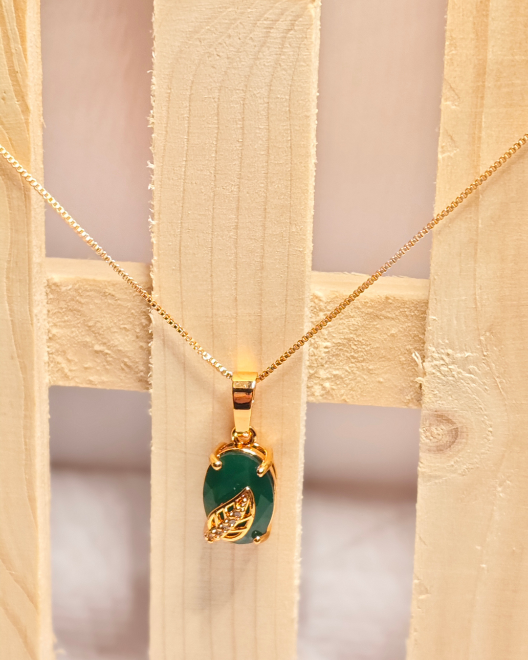 Gold Plated Green Stone Pendant Necklace: Nature’s Elegance