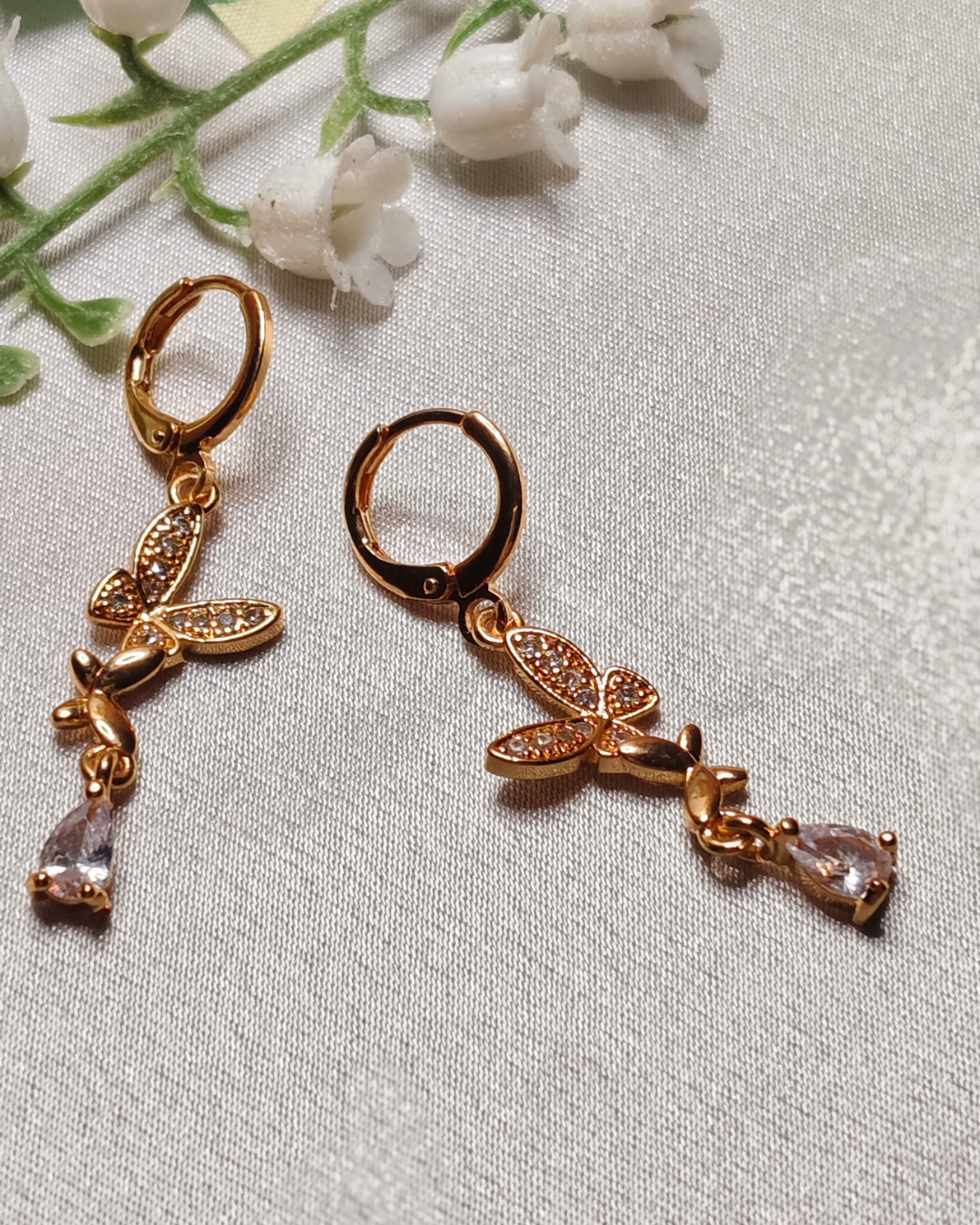 - Delicate Butterfly Theme Gold Plated: The charming butterfly and soft teardrop stone make this pair a subtle yet stylish statement, perfect for casual outings or office wear.
