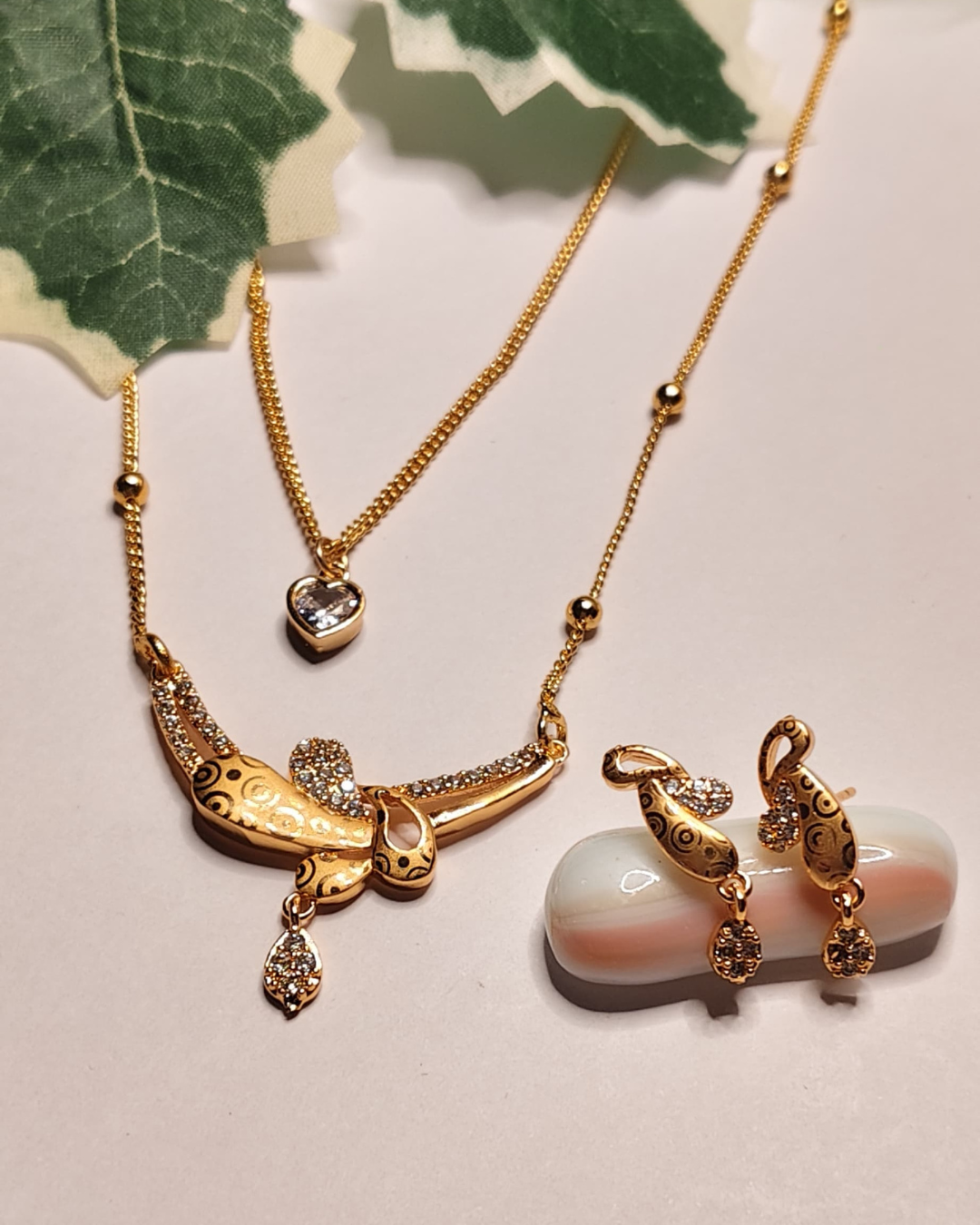 Gold Plated Swirl CZ Necklace Set: Modern Elegance