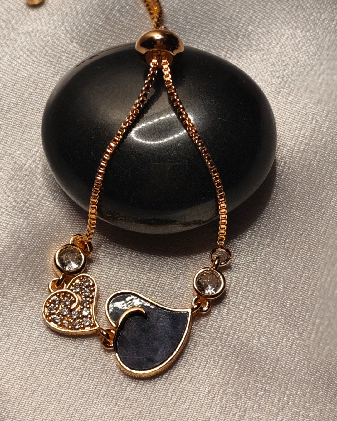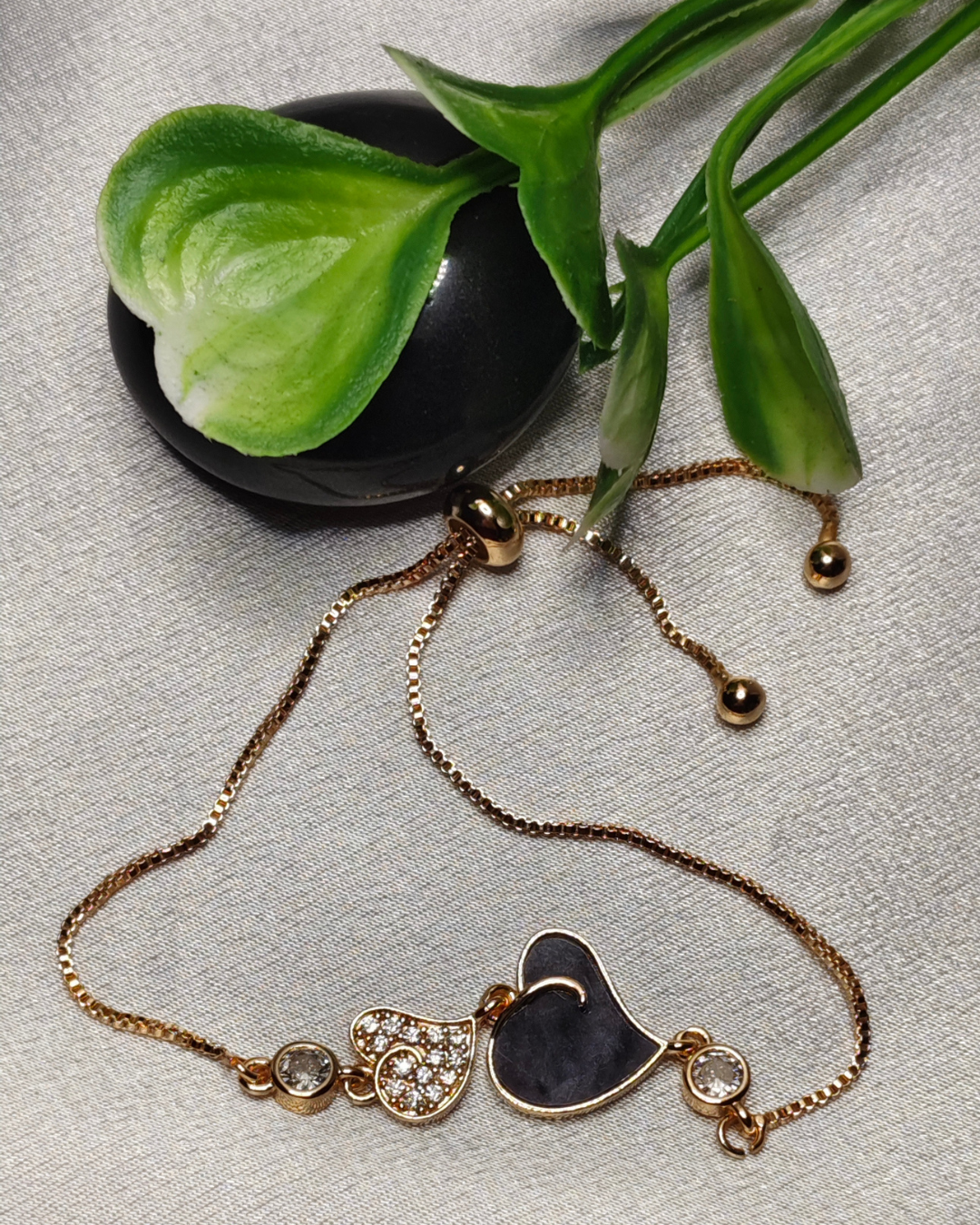 Shop this unique Rose Gold Pave and Enamel Heart Bracelet. This Tarnish Free Adjustable Slider Bracelet features a striking Black and Rose Gold Bolo Bracelet India design, making it an ideal Dual Heart Love Symbol Gift.