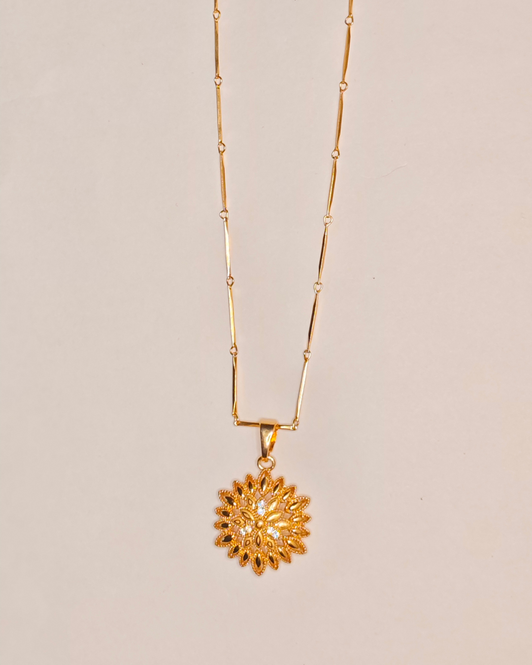 Traditional Gold Plated Flower Necklace | Ornate Sunburst Design